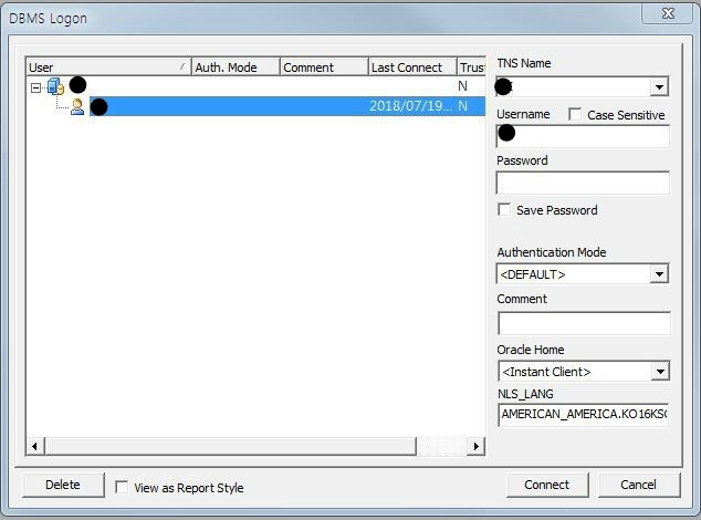처음 접하는 사용자는 TNS NAME이 뭔지도 모르는데 무엇을 입력하라는지 .... 대략 난감 하다.