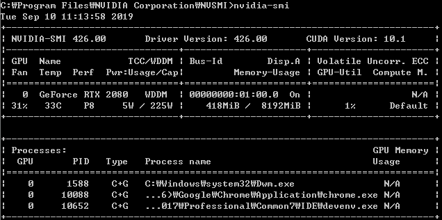 - Driver Version: 426.00, Cuda Version: 10.1을 사용하고 있다고 보여 준다.